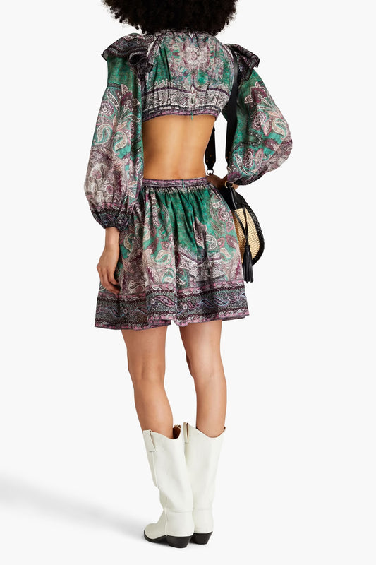 ZIMMERMANN - Cutout Paisley Print Cotton Gauze Mini Dress - UK12 - RRP: £594